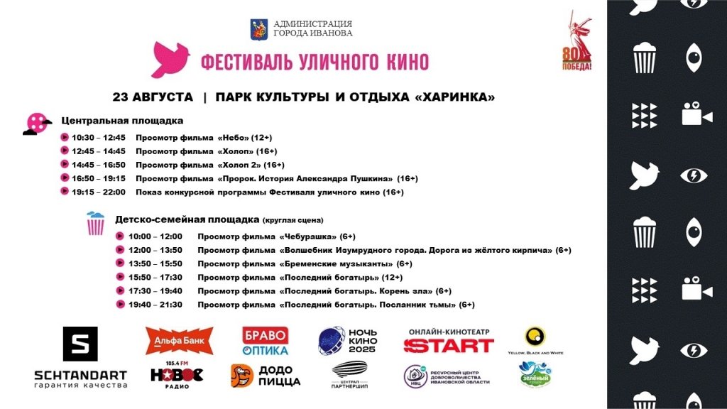 Программа Фестиваля уличного кино в городе Иваново |